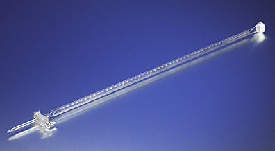 PYREX brand Burets, Class A, Colored Markings^ Precision Bore. Straight Bore [standard taper] Stopcock. 25 mL. 12 x 565 mm. Graduation:.10 mL. For [standard taper] stopcock plug only,see No. 7680. For retaining clip only, see No. 7280. Stopcock Bore:2 mm. Tolerance: /-.03 mL.