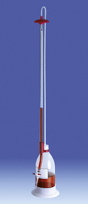Burette 0.5 l^ Splinter-proof titrating burette, made of borosilicate glass 3.3, Shatter-proof, resistant to chemicals, Sturdy stand, Precise discharge jet, allowing very fine drops. Burette capacity: 50 ml, Division: 0.1 ml, Precision: /-0, 075 ml, Height: 92 cm, Capacity: 0.5 l
