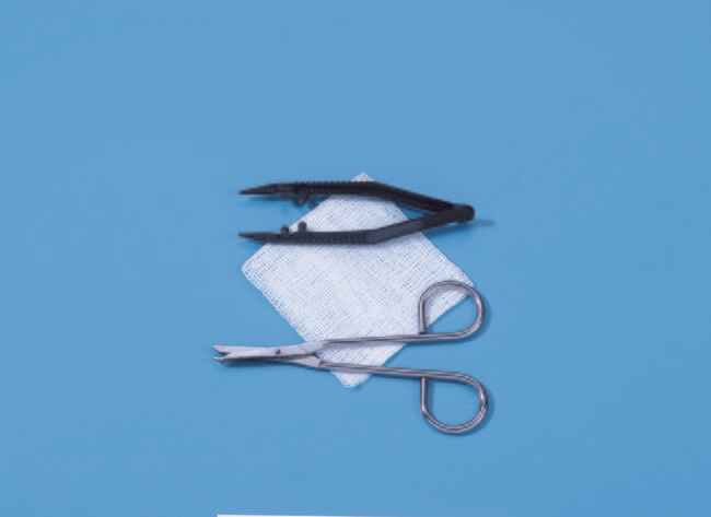 Kit, Sterile Suture Removal; With Plastic Posi-Grip Forceps, One tray, One metal Littauer hook-tipped scissors, One 3 x 3 in. gauze sponge; 50/CS