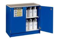 Nonmetallic Acid/Corrosive Storage Cabinet^ Has 1 Shelf And Polyethylene Top Designed To Contain Spills. For Nitric, Sulfuric And Phenol Corrosives. "Acid" Is Printed On Cabinet Front In White Letters. Holds Thirty-Six 2.5L Bottles. Two Sliding Doors. Laminated, Blue, Lockable. 91.4Wx55.8Dx91.4Hcm.