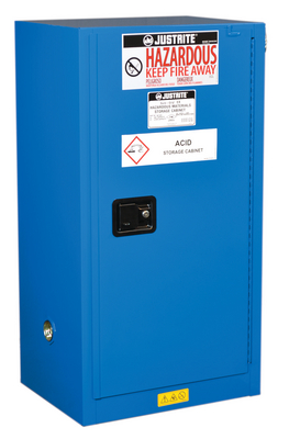Safety Cabinet^ Safety Cabinet Sure-Grip* EX Compac Hazardous Material Steel, Capacity 15 gal, 1 shlf 1 s/c dr, Royal Blue, Self-Close, Dimensions, Exterior: 23.25in W x 44in H x 18in D