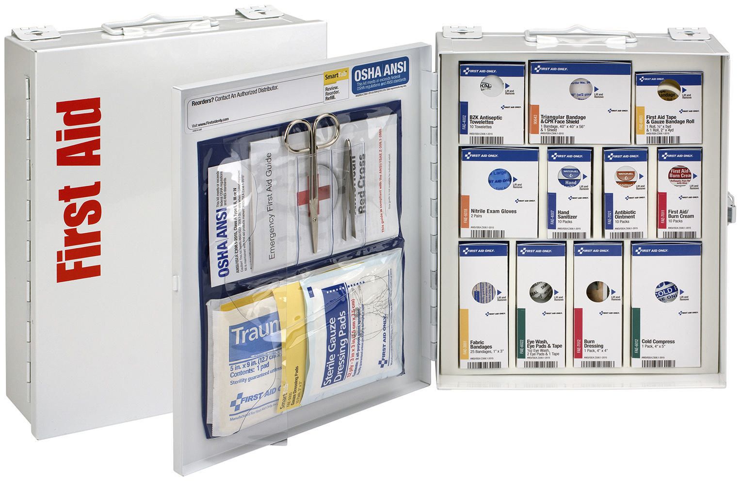 Cabinet 11.25x9x3in^ Cabinet, 25 Person, SmartCompliance, ANSI A, Type I/II, Without Medication, Redefines business first aid, Material: Steel, With a carrying handle and is wall mountable, 3 powerful components work together to create the comprehensive solution, Dimension: 11.25x9x3in, Size: Medium