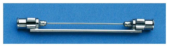 Double-hub needles are designed for use in mixing two liquid media differing in viscosity—especially for adjuvants and antigens, oil-based liquids, allerge