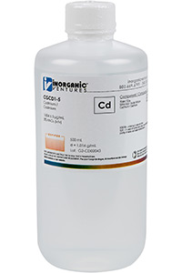 1000 ppm (µg/mL) Cadmium for ICP is a 500mL certified reference material set in a nitric acid matrix for stability. This cadmium standard is Traceable to NIST and manufactured in accordance with our stringent Quality Assurance guidelines. One year Expiration Date.