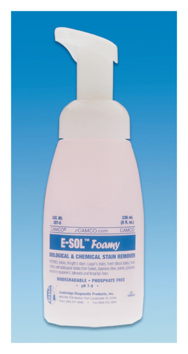 Camco E-SOL Foamy Stain Remover, Rapidly removes most stains from hands, hospital linens, glassware and laboratory equipment, Each