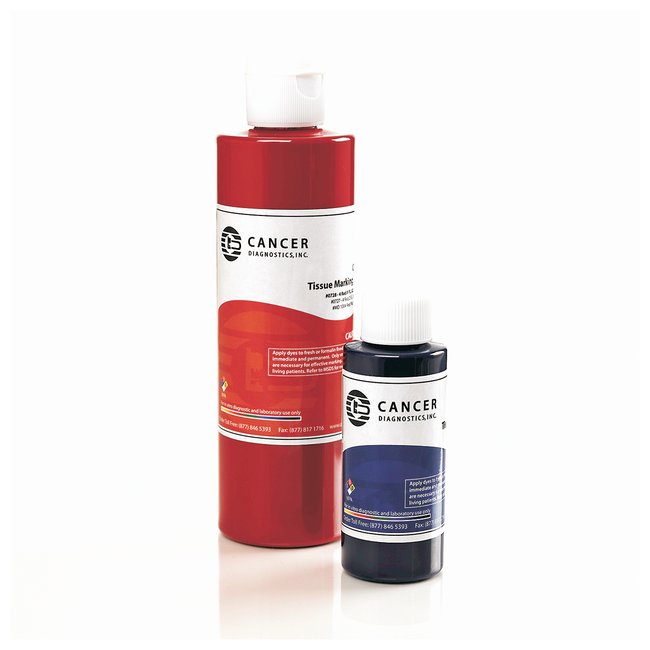 Dyes are pigment-based with an alcohol foundation for consistency and durabilityProprietary blend of materials remains bright through processing and produces clean, crisp resultsWill not run or bleed on tissueImpervious to laboratory chemicals and reagentsOrder InfoIndividual colors available in two sizes; also available in systems with sets of six or seven colors, wood tray and 50 applicator sticks. Two-year shelf life.