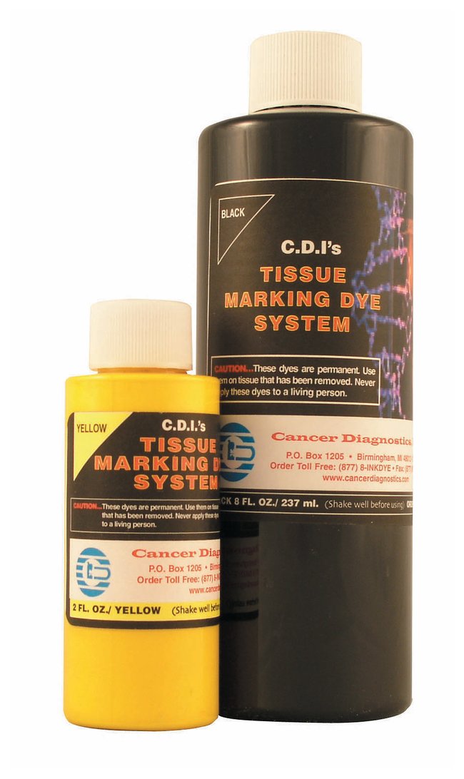 Dyes are pigment-based with an alcohol foundation for consistency and durabilityProprietary blend of materials remains bright through processing and produces clean, crisp resultsWill not run or bleed on tissueImpervious to laboratory chemicals and reagentsOrder InfoIndividual colors available in two sizes; also available in systems with sets of six or seven colors, wood tray and 50 applicator sticks. Two-year shelf life.