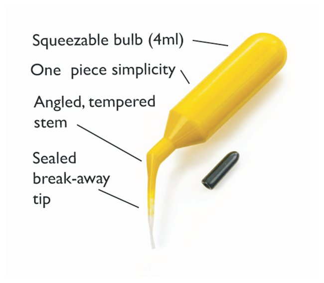 Allow precise dispensing and are easy to see after tissue processingExtremely efficient—no drying out, no messAvailable in dispenser boxes with 15 squeezers, or kits with three squeezers each of six or seven dye colors in a holding trayEach 4mL squeezer includes a cap for recapping