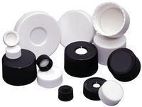 MicrolinkBlack Open Top Caps With PP/Silicone fluoropolymer resin Liner, Screw cap size: 38-430^ Black, open top, autoclavable cap. The ultrasonic welding of the liner to the cap eliminates the possibility of toxicity.