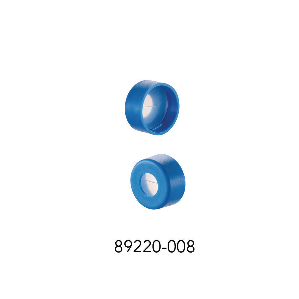 Caps, AQR, autosampler^ Snap top, light blue with pre-slit fitted ultra pure silicone/PTFE septa. For use with AQ brand snap top vials. 100/pack.
