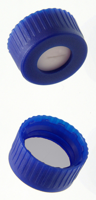 Autosampler Blue screw top Cap^ With bonded preslit tan colored silicone rubber/ PTFE septa. For use with 9-425mm, 12x32mm vials, 100/pack