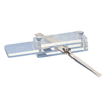 Additional Info Used frequently for preparation of thin, uniform sections of fresh tissue as necessary for metabolic studies of tissue in vitroSections average 0.5 mm in thicknessConsists of three flat plates of carefully machined and polished transparent methacrylate, 13 mm thick, one extended to form a handle and a thin carbon steel blade with 102 mm cutting edge; not autoclavableNickel-plated brass, detachable handle with wing nut for fastening bladeParts separate easily for cleaningCircular platform, 31 mm diameter x 12 mm high, on base plate; fits into circular opening in middle plate. With 10 carbon steel blades, 117 mm long.Other Applications: these blades are also used in the polymer clay industry for thin slicing of clay materials, with no pulling or tearing of material. It also produces very thin sections when needed. NOTE: these microtome blades are extremely sharp and should be handled with extreme care.TB_Supplies_Tissue Slicer_2017Tissue Slicer Instructio