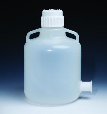 Carboy With Sanitary Bottom Flange, PP, non sterile^ Standard NALGENE carboys with an installed 1-1/2-inch sanitary fitting welded in for use as a dispensing port.