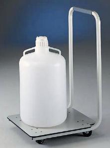 Carboy Caddy^ Holds up to 163kg. Low platform height for transporting carboys, jugs and large reagent bottles. Frame is 18-gauge tubular steel. Hard rubber 7.6cm diameter casters. Melamine laminate platform surface. Dimensions: 51Lx60Wx98Hcm. Shipping Weight: 9.5kg.