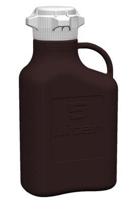 VWR dark amber carboys are designed to protect photo-sensitive materials while providing users with a highly versatile container that maximizes storage efficiency and ease of use. The distinctive rectangular shape saves valuable bench space. Made in the USA, these carboys feature larger handles on top of the container and molded grips in the base, providing a full, secure grip to make lifting, handling, and pouring easy. The optional wide neck allows users to reach inside the carboy for easier cleaning. Carboy material and volume are clearly imprinted on the outside of the container, along with large, easy-to-read metric graduation marks certified to ±5% accuracy. The dark amber carboys are made from polypropylene, in compliance with FDA requirements for food use. The versatile caps are constructed of polypropylene and are autoclavable at 121°C (250°F) for fifteen minutes. Features include: * Polypropylene fabrication * Autoclavable * Optional wide neck enables easier cleaning * Secure lifting with molded grips Available in two sizes: * 5 L (1.3 gal.) - Material: Dark Amber Polypropylene, Cat. No.: 89233-024, Cap Size: 80 mm * 20 L (5.3 gal.) - Material: Dark Amber Polypropylene, Cat. No.: 89233-032, Cap Size: 120 mm