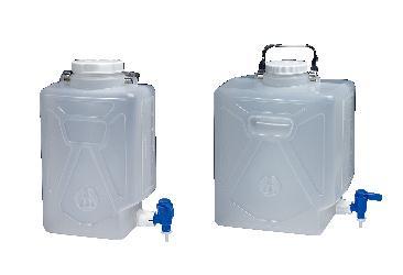 NALGENE* Rectangular Carboys with Spigot and Handle, Polypropylene^ 9L, leakproof carboy has a 8.9cm neck and sturdy handles. Ideal for dispensing solutions, media, and sterile water. Autoclavable. Supplied with spigot and screw closure. 21.6x14.6x35.6cm.