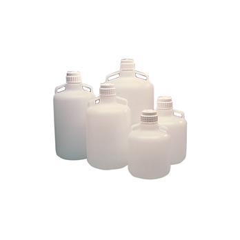 For storing corrosive chemicals and standard solutionsNalge 2210 seriesLow-density polyethylene bottles have two molded handles and size 83B polypropylene screw capLeakproofGraduated to contain in 1-gallon and 5-liter incrementsDimensions: 20 liter carboy: 20 1/2” high, 11 1/4” o.d.; 25 liter carboy: 23 1/2” high, 11 1/4” o.d.; 50 liter carboy: 26 1/2” high, 14 3/4” o.d.