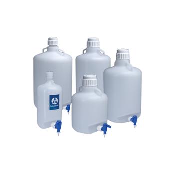 Specifications Nalge 2318 seriesSupplied with cap and Thomas number 1753C67 spigotLeakproofSizes 10 L and larger have two molded handles and take Cap No. 83B; 4 L size takes Cap No. 38-430Graduated to deliver in 1-gallon and 5-liter increments. 4 L is not graduated.Thomas No.CapacityHeight1753C104 L13 3/4 "1753C2410 L15 1/2 "1753C3120 L20 7/8 "1753C4125 L23 7/8 "1753C5150 L27 "