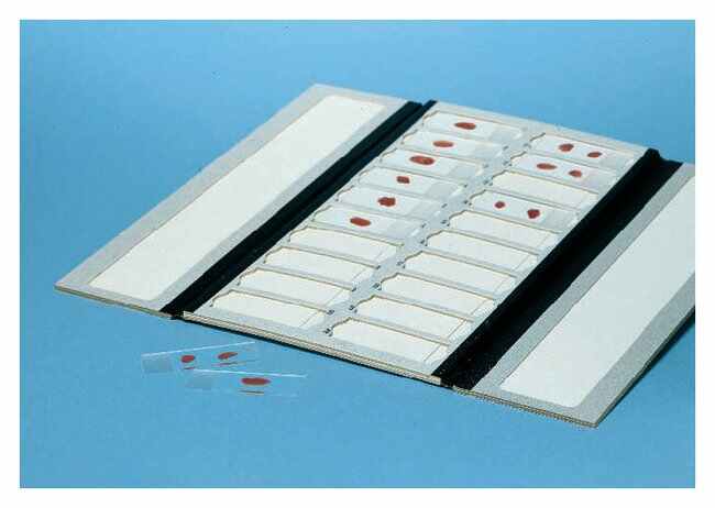 Store and transport up to 20 standard microscope slides in sturdy cardboard folders. Fisherbrand™ Cardboard Slide Trays feature recessed slots that protect specimens and thumb cuts for easy slide access. Disposable trays are ideal for short-term storage or slide transporting.