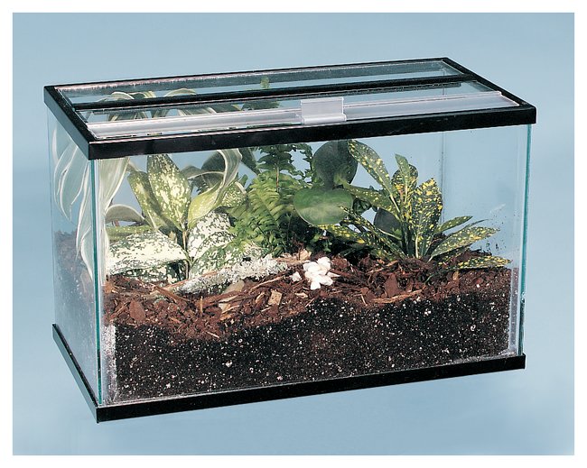 5.5 gal. glass terrarium with cover5 tropical plants, terrarium soilDecorative bark chipsInstructio