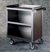 Three-Sided Stainless Steel Cart^ Three stainless steel shelves measure 39x61cm. Top shelf has a 2.5cm lip on three sides. Bumpers on legs and handle. 10.2cm swivel rubber casters. Capacity: 182kg. Assembled. Overall size: 43Wx72Lx87Hcm. Shipping weight: 22.7kg.