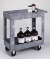 Heavy-Duty Utility Cart^ Two shelves. Beige. Ideal for cleanroom use. Molded plastic. Seamless, easy to clean. No sharp edges to scratch walls. Integral handle, non-marking casters. 66Wx114.3Lx83.8Hcm. Nominal load capacity: 226.8kg. Shipping weight: 20.3kg. USDA listed.