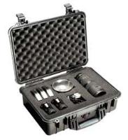 Pelican* Protector Case*^ Unbreakable, watertight, dustproof, chemical-resistant, and corrosion-proof. Made of ultra-high impact structural copolymer for durability. 6.4mm neoprene O-ring and ABS latches. Temperature: -23 to 99[degree]C. Outside: 47x35.7x17.6cm. Depth: 11cm. Black.