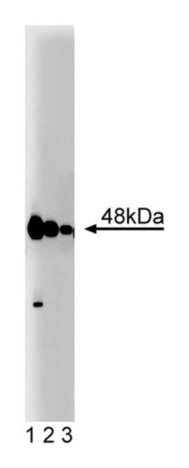 Caspase-2/ICH-1 is related to the C. elegans cell death gene product CED-3 and its mammalian homologue interleukin-1β-converting enzyme (ICE). Caspase-2 /ICH-1 was identified from a mouse cDNA library and originally termed NEDD-2. The NEDD-2 mRNA was found to be expressed during early mouse embryonic brain development and subsequently down-regulated in adult neuronal tissue. With the identification of the human NEDD-2 gene, the murine gene was renamed Ich-1 to symbolize Ice and ced-3 homology. Caspase-2/ICH-1 mRNA is alternatively spliced. The larger mRNA species encoding a product of 435 amino acids is known as Caspase-2 long, or ICH-1L. The smaller mRNA species encoding a protein of 312 amino acids is named Caspase-2 short, or ICH-1S. Overexpression of ICH-1L induces apoptosis, while over-expression of Ich-1S suppresses Rat-1 cell death induced by serum deprivation. Thus, it appears that Caspase-2/ICH-1 plays an important dual role in programmed cell death.Immunofluorescence, Western Blotting