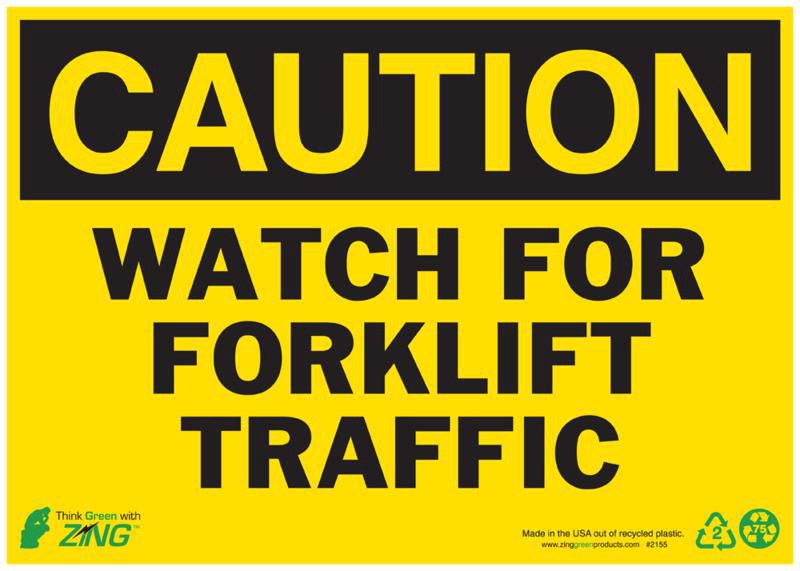 Caution Sign Recycled Plastic Watch For Forklift Traffic^ Caution Sign, Recycled Plastic, Watch For Forklift Traffic, Pre-Drilled Mounting Holes & Adhesive Tabs, Impact And Uv Resistant, Ul Validated For Recycled Content, Easy To Write On And Supports Osha Standard 1910.145, 7In X 10I
