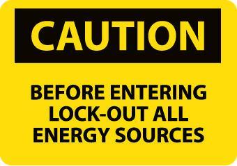 Caution Series Sign^ 17.8X25.4Cm. "Before Entering Lock-Out All Energy Sources." Bright Yellow And Black Rigid Plastic. Indicates A Potentially Hazardous Situation. Meets Osha 29 Cfr-1910.145 And Ansi Z35.1-1972 Guidelines.