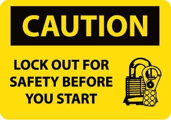 Caution Series Sign^ 25.4X35.6Cm. "Lock-Out For Safety Before You Start." Bright Yellow And Black Rigid Plastic. Indicates A Potentially Hazardous Situation. Meets Osha 29 Cfr-1910.145 And Ansi Z35.1-1972 Guidelines.
