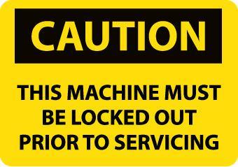 Caution Series Sign^ 17.8X25.4Cm. "This Machine Must Be Locked Out Prior To Servicing." Bright Yellow And Black Rigid Plastic. Indicates A Potentially Hazardous Situation. Meets Osha 29 Cfr-1910.145 And Ansi Z35.1-1972 Guidelines.