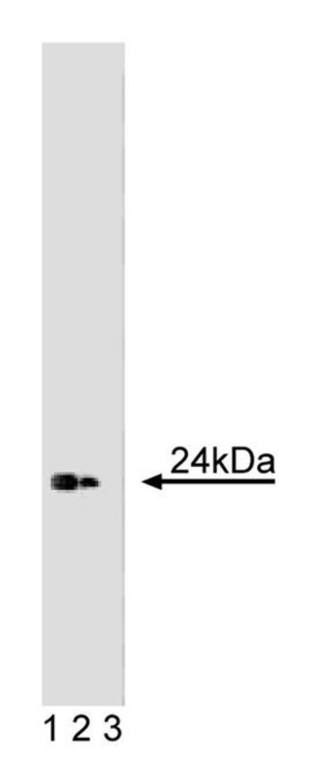 Identified as a tyrosine phosphorylated protein in Rous sarcoma virus-transformed chick embryo fibroblasts (CEF), caveolin is now known to be ubiquitously expressed. Caveolin (also known as VIP21) localizes to non-clathrin membrane invaginations (caveolae) on the inner surface of the plasma membrane. This transmembrane protein plays a structural role in these specializations. Caveolin is also present at the trans-Golgi network (TGN) and similar quantities are found in apically and basolaterally destined transport vesicles. Caveolin is part of a complex containing glycosylphosphatidylinositol (GPI)-linked molecules and cytoplasmic signaling proteins. Caveolin is a transmembrane adaptor molecule that can simultaneously recognize GPI-linked proteins and interact with downstream cytoplasmic signaling molecules, such as c-yes, Annexin II, and hetero-trimeric G proteins. Caveolin-1 can generate two forms, α and β, due to alternate splicing of the mRNA. The α isoform has been reported to be observed at 24kDa and the β isoform at 21kDa. Caveolin-1 forms large lipid-binding homo-oligomers which are believed to play a role in caveolae formation. It may also function as a scaffolding protein which concentrates andorganizes signaling molecules, a role supported by the fact that caveolin-1 interacts directly with inactive Ras and G-protein α subunits.Flow Cytometry, Immunofluorescence, Immunohistochemistry, Immunoprecipitation, Western Blotting