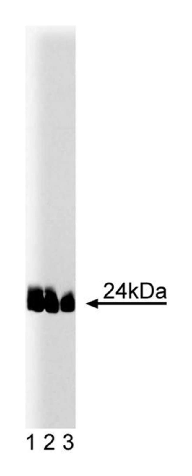Caveolin (VIP21) localizes to non-clathrin membrane invaginations (caveolae) on the inner surface of the plasma membrane. In addition, it is present in the trans-Golgi network (TGN) and in apically and basolaterally destined transport vesicles. Caveolin is a transmembrane adaptor molecule that recognizes GPI-linked proteins and interacts with downstream cytoplasmic signaling molecules, such as src-family tyrosine kinases and hetero-trimeric G proteins. Caveolin forms large lipid-binding oligomers, which are thought to play a role in caveolae formation. It may also function as a scaffolding protein, which organizes signaling molecules. This functional role is supported by the fact that caveolin interacts directly with inactive ras and G-protein α subunits. Phosphorylation of caveolin at Tyr-14, Ser-88, and other residues in v-src transformed cells leads to flattening, aggregation, and fusion of caveolae and caveolae-derived vesicles. Thus, caveolin is the principle protein of caveolae and may be involved in v-src mediated cellular transformation.Host Species: MouseClone: 56Isotype: IgG1Species Reactivity: HumanImmunogen: Phosphorylated Human Caveolin-1 (Y14) PeptideFormula Weight [Chemical]: 21-24kDaFlow Cytometry, Immunofluorescence, Immunohistochemistry, Intracellular Staining, Western Blotting