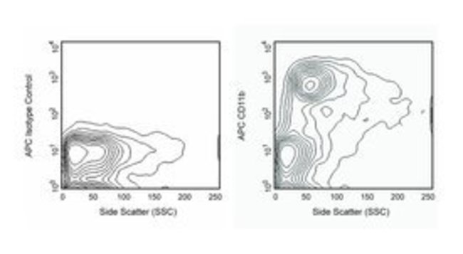 The M1/70 monoclonal antibody specifically binds to CD11b, also known as Integrin alpha M (Itgam or α;M) . CD11b is a 170-kDa type 1 transmembrane glycoprotein and belongs to the Integrin alpha chain family. CD11b serves as the alpha chain of the heterodimeric Mac-1 integrin (CD11b/CD18, α;Mβ;2), also known as complement receptor 3 (CR3) . Mac-1 mediates adhesion to ICAM-1 (CD54), ICAM-2 (CD102), fibrinogen and binding to C3bi. Mac-1 is expressed at varying levels on granulocytes, macrophages, myeloid-derived dendritic cells, natural killer cells, microglia, and B-1 B lymphocytes. Mac-1 expression is rapidly up-regulated on neutrophils after activation, in the same time period that CD62L (L-selectin) is shed from the cell surface. The M1/70 antibody reportedly blocks cell adherence and C3bi binding but does not block cell-mediated lysis. Cross-reaction of the M1/70 antibody with CD11b expressed on human monocytes, polymorphonuclear leukocytes, and NK cells has been reported.