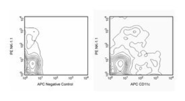 The HL3 antibody reacts with the integrin αx chain of gp150, 95 (CD11c/CD18) which is expressed on dendritic cells and CD4- CD8+ intestinal intraepithelial lymphocytes (IEL) and is upregulated on IEL and lymph-node T cells following in vivo activation. CD11c is also found on human NK cells. Although its expression on mouse NK cells is not published, we have detected CD11c on mouse splenic NK cells. Cells of the monocyte/macrophage lineage have been reported to express low levels of CD11c. CD11c plays a role in binding of iC3b. This antibody is routinely tested by flow cytometric analysis. Other applications were tested at BD Biosciences Pharmingen during antibody development only or reported in the literature.Host Species: HamsterClone: HL3Isotype: IgG1 λSpecies Reactivity: MouseImmunogen: C57BL/6 Mouse Intestinal Intraepithelial LymphocytesFlow Cytometry