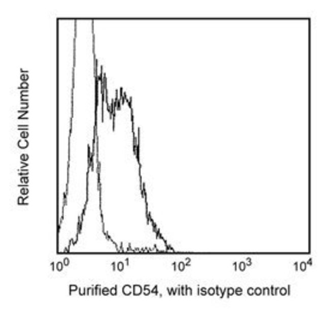 Reacts with the 85-110kDa integral membrane glycoprotein, also known as intracellular adhesion molecule-1 (ICAM-1), expressed on endothelial cells and both resting (weak) and activated (moderate) lymphocytes and monocytes. CD54 is a ligand for the leukocyte function antigen-1 (CD11a). CD54 antibodies are used for the studies of inflammatory processes and neoplasia. This antibody (NA/LE format) blocks the mixed-lymphocyte reaction (MLR) and the purified format is suitable for staining acetone-fixed, frozen tissue sections. This antibody is routinely tested by flow cytometric analysis. Other applications were tested at BD Biosciences Pharmingen during antibody development only or reported in the literature.