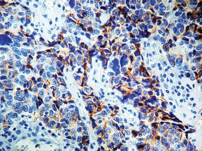 CD56, NCAM-1^ Clone number 123C3.D5, This antibody is specific to two proteins of 185 kD and 145 kD, identified as two isoforms of neural cell adhesion molecules (NCAM/CD56). NCAM is expressed on most neuroectodermal derived cell lines, tissues and neoplasm such as retinoblastoma, medulloblastoma, astrocytomas and neuroblastoma.