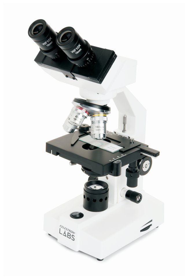 Full-metal construction with fully mechanical stageCoarse and fine focus knobsAchromatic objective lensesAbbe condenser with iris diaphragm concentrates and focuses lower illumination for viewing