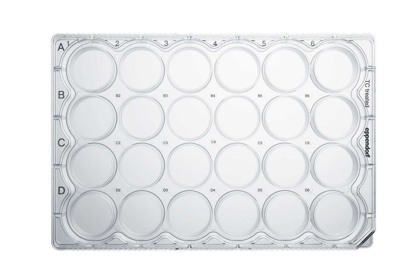 Cell Culture Plates 24 well^ Cell Culture Plates, 24-Well, With lid, Flat bottom, TC treated, Sterile, Easy well identification, Moat surrounding the wells, Chimney-well design, Robust stacking performance, Lid taps under the plate, Pronounced ventilation