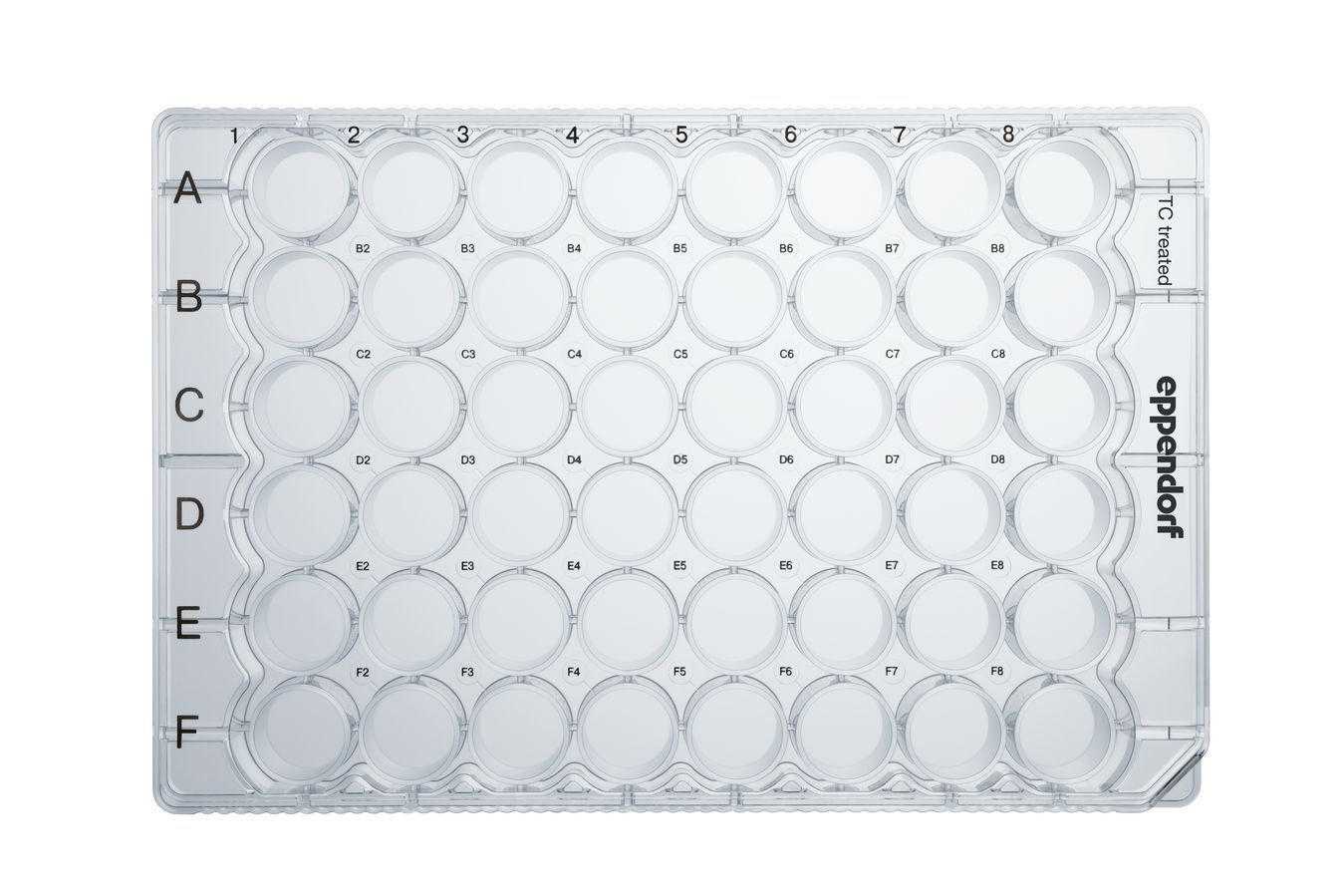 Cell Culture Plates 48 well^ Cell Culture Plates, 48-Well, With lid, Flat bottom, TC treated, Sterile, Easy well identification, Moat surrounding the wells, Chimney-well design, Robust stacking performance, Lid taps under the plate, Pronounced ventilation