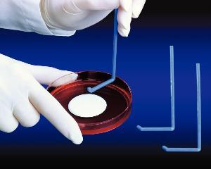 Polystyrene Spreader^ Durable, disposable and nonbreakable. L-shaped for a smooth and even sample distribution, reducing the likelihood of the spreader digging into the agar. Presterilized to eliminate flaming or autoclaving and reduce risk of contamination. Individually wrapped (1 per pouch).