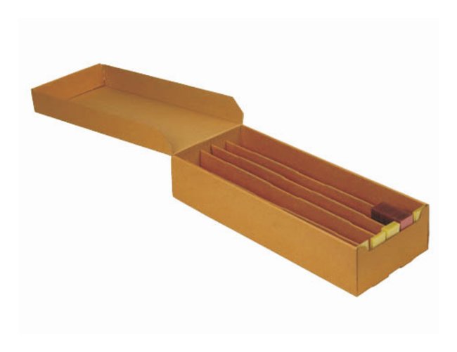 Cost effective solution to the long-term storage of microscope slides. CellPath ECOSLIDE Microscope Slide Storage Box is made from recycle material and is supplied with pre-printed archive label for clear identification and rapid retrieval.