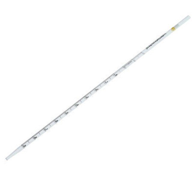 Serological Pipet, 1mL, Polystyrene, Individually Wrapped in Paper/Plastic, Packed in Bags. CELLTREAT Scientific Products. Dark, clear graduations. Premium plug material.