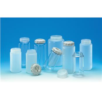 Centrifuge BottlesAvailable with standard caps for low-speed work and sealing caps for high-speed applications. Sealing caps have a built-in gripper to facilitate removal from the rotor.Extra thick walls for durability resistance to most chemicalsWide mouth design makes filling and decanting easierThese precision-molded centrifuge bottles are available in polycarbonate or polypropylene. For low speed applications, the bottles provide excellent value for large volume/large batch centrifugation procedures. Bottles with standard caps provide reliable performance up to 8250 xg (7400 xg for the 1 L size) in swinging bucket and fixed angle rotors. For high-speed work, the easy-to-use Noryl® sealing caps with silicone 0-rings enable leak-free processing at high centrifugal forces over long durations. Bottles must be filled to 80% of capacity.Centrifuge bottles may be autoclaved at 121°C at 15 psi for 20 minutes. Caps should be placed on the bottles without engaging the threads. Bottles are qualified to the rated g-forces using Sorvall® and Fiberlight® high-speed rotors, tested at 20°C, with bottles filled to 80% of capacity.Failure to use the correct rotor cushion or adapter will shorten the life of the bottle and may prevent achievement of the maximum rated RCF and/or bottle failure. Prolonged autoclaving and reuse may cause stress cracks, crazing or bottle discoloration.