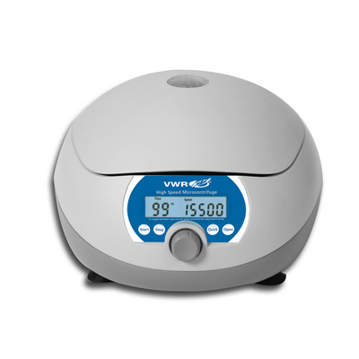 Max. Capacity: 12×1.5/2.0 ml, Max. Speed: 15500 rpm, Voltage: 115 V, The compact, affordable VWR® High Speed Microcentrifuge is capable of high speed performance up to 15500 rpm/16100×g., A solid, high-grade aluminum rotor is including and accepts microtubes (1.5 to 2.0 ml)., 04_BodyText: Time and speed settings are easily adjustable on a large LCD display and the speed can be set or viewed in rpm or rcf (relative centrifugal force). A safety imbalance mechanism is designed to stop the centrifuge if started out of balance and the locking lid cannot be opened unless the rotor has come to a complete stop. Other features include fast acceleration and deceleration (11 s), and reduced temperature buildup within the samples, even for extended runs at the maximum speed., 05_BodyText: The rotor also includes a convenient snap-on plastic lid to reduce the risk of contamination., 06_BodyText: 2 year warranty., 02_BulletPoint: Compact, less than 9" Ø | Near-silent operation | Large LCD with rcf conversion | Decelerated in just 10 seconds | Capacity: 12×1.5/2.0 ml, 08_Certifications: CE marked., 11_Delivery: Supplied with rotor., High speed microcentrifuge, 115 V, Electrical: 115 V, 50 Hz, Max. RCF: 300 - 16100 ×g, Acceleration/Braking Time: 11/11 s, Speed: 300 - 15500 rpm, Timer: 20 s - 99 min or continuous, W×D×H: 10.6×9×6.1", Cat. No.: 75838-336, The compact, affordable VWR® High Speed Microcentrifuge is capable of high speed performance up to 15500 rpm/16100×g., A solid, high-grade aluminum rotor is including and accepts microtubes (1.5 to 2.0 ml)., 04_BodyText: Time and speed settings are easily adjustable on a large LCD display and the speed can be set or viewed in rpm or rcf (relative centrifugal force). A safety imbalance mechanism is designed to stop the centrifuge if started out of balance and the locking lid cannot be opened unless the rotor has come to a complete stop. Other features include fast acceleration and deceleration (11 s), and reduced temperature buildup within the samples, even for extended runs at the maximum speed., 05_BodyText: The rotor also includes a convenient snap-on plastic lid to reduce the risk of contamination., 06_BodyText: 2 year warranty., 02_BulletPoint: Compact, less than 9" Ø | Near-silent operation | Large LCD with rcf conversion | Decelerated in just 10 seconds | Capacity: 12×1.5/2.0 ml, 08_Certifications: CE marked., 11_Delivery: Supplied with rotor.