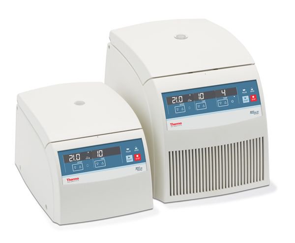 Heraeus microcentrifuge Fresco 21 120v^ Heraeus microcentrifuge, includes dual row 18 x 2.0/0.5 mL rotor with screw-on lid, 120V, Max RCF: 21,100 xg, Max Speed: 14800 rpm, Temparature: -9 C to 40 C, For routine separations, Fast acceleration and deceleration, Dimensions: 330 x 295 x 445 mm