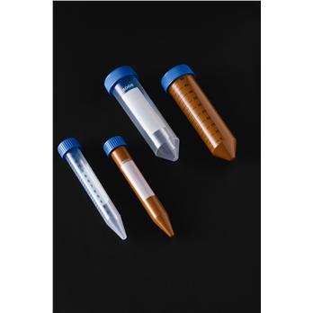 Polypropylene tubes include blue HDPE leak-proof screw caps. The tubes and caps feature specially-designed flat threads for vacuum-type closure that is leak-free at a press of >700mm Hg. Highly smooth hydrophobic internal surfaces minimize wall effect. Silk-screen graduations and a frosted surface make writing easier.Autoclavable at 121°C and 15 psi for 30 minutes (tubes only, caps are NOT autoclavable)Radiation sterilizedDNase, RNase, Pyrogen and latex-freeMaximum RCF 14000Amber colored tubes are suitable for light sensitive applications because they do not allow any light to pass through the samples.