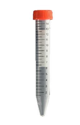 Corning* Conical-Bottom Centrifuge Tube^ 50mL polypropylene tube. Sterile, certified non-pyrogenic. Resistant to acetone and phenols. Black printed graduations. Complete with flat top rim seal cap. Maximum RCF: 9, 400g. Packaged 25 tubes per sleeve, 20 sleeves per case. Disposable.
