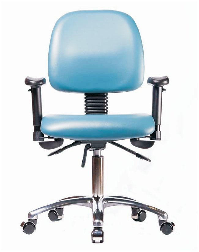 Fisherbrand™ Vinyl Chairs in Chrome are height adjustable for 31 in. work surfaces and feature ergonomic adjustments, adjustable arms, and self-braking casters. Antibacterial/Antifungal Grade B vinyl in a variety of colors will suit any work space